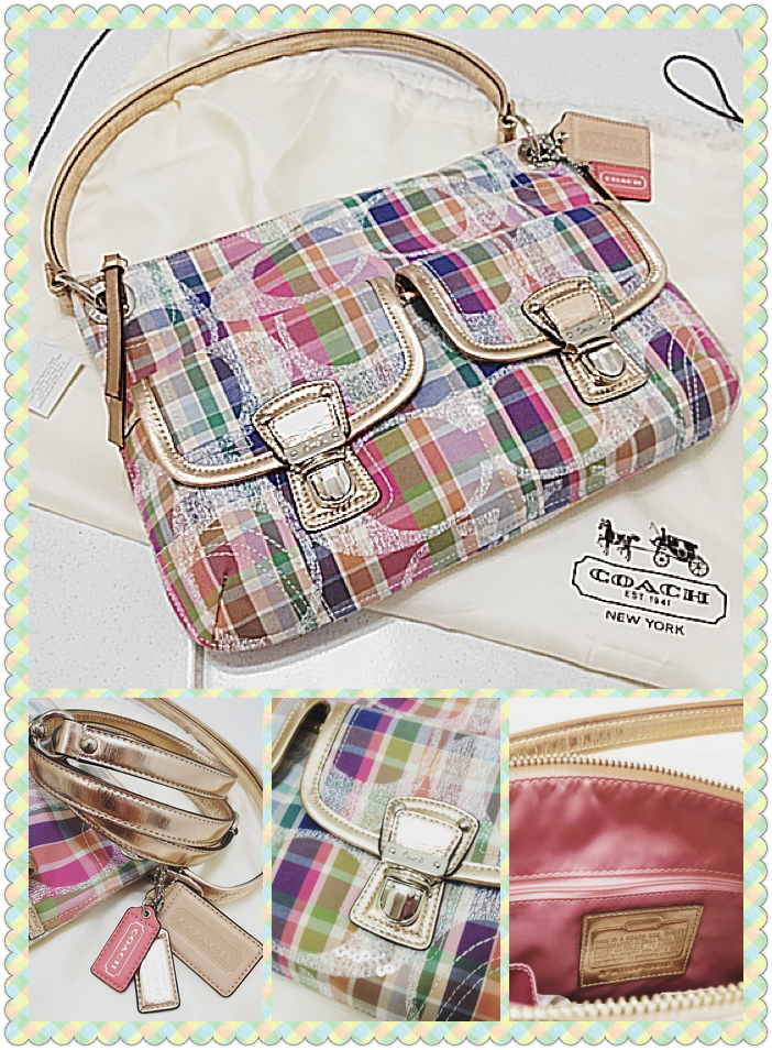 Multi-coloured with rose-gold trimmings COACH bag from a boutique at Las Vegas, Caesar Palace.